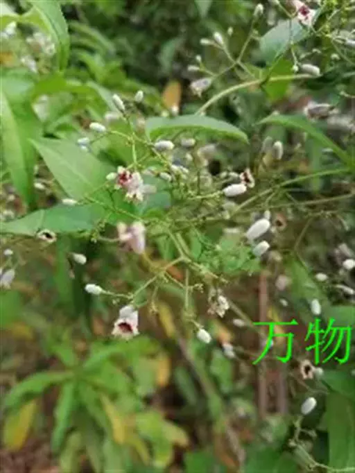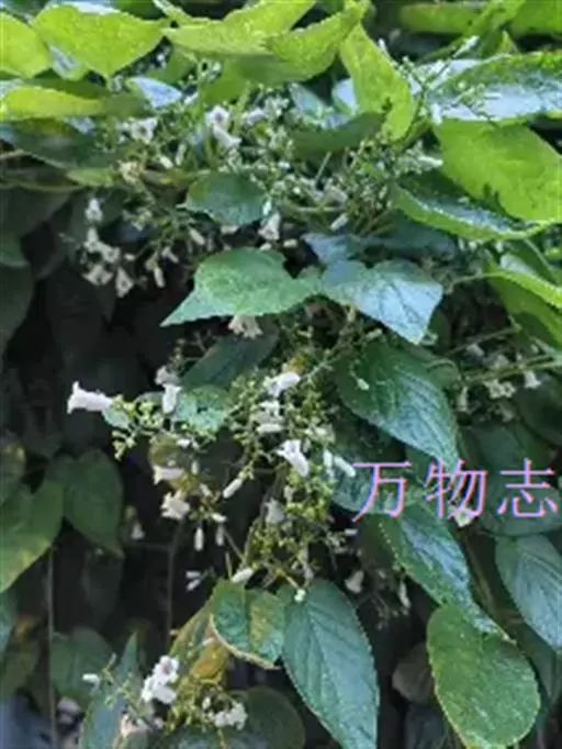 鸡屎藤,多年生草质藤本。其茎呈扁圆柱形,稍扭曲,无毛或近无毛,老黄牛茎灰棕色,直径3 鸡屎藤 -12mm,栓皮常脱落,有纵皱纹及叶柄断痕,易折断,断面平坦,灰黄色;嫩茎黑褐色,直径 1-3mm,质韧,不易折断,断面纤维性,灰白色或浅绿色。叶对生,多皱缩或破碎,完整者展平后呈宽卵形或披针形,长5-375px,宽2-150px,先端 尖,基部楔形,圆形或浅心形,全缘,绿褐色,两面无柔毛或近无毛;叶柄长1.5-175px,无毛或有毛。聚伞花序顶生或腋生,前者多带叶,后者疏散少花,花序轴及花均被疏柔毛,花淡紫色。其喜温暖湿润的环境,常生于溪边、河边、路边、林旁及灌木林中,常攀援于其他植物或岩石上。