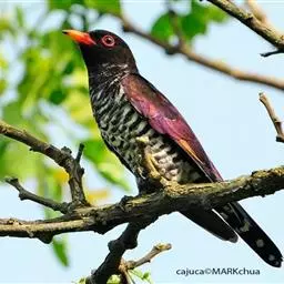 大杜鹃:是普通杜鹃的中国亚种。体长约320毫米,翅长约210毫米。雄鸟上体纯暗灰色;两翅暗褐,翅缘…