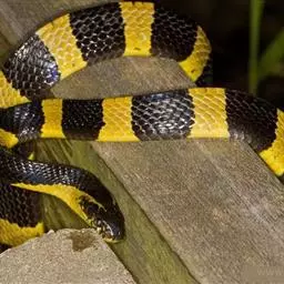 银环蛇是中国毒性最强的毒蛇,危险性极高,而且平时看似很温顺,使人放松警惕,但银环蛇咬人时从不警告。