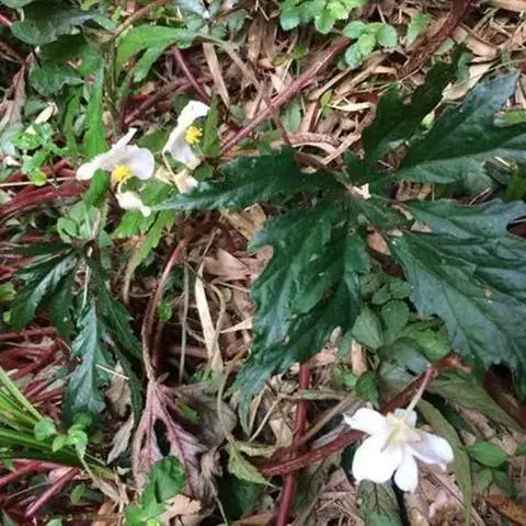 掌裂叶秋海棠无秋海棠科,秋海棠属的多年生草本植物,根状扭曲茎粗,长圆柱状,叶自根状茎抽出,…