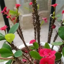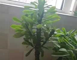 虎刺梅:别称铁海棠,是蔓生灌木植物。茎多分枝,长60-100厘米,直径5-10毫米,具纵棱,密生硬…