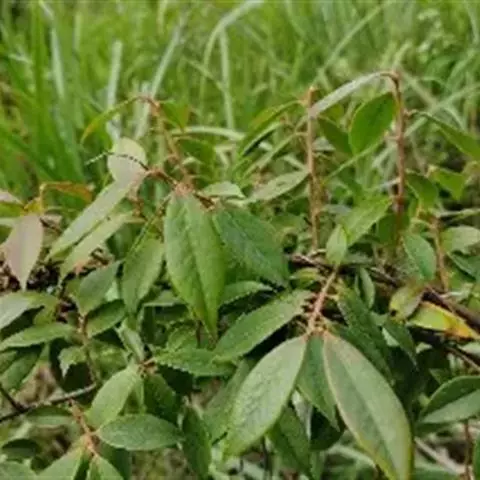 叶片薄革质,椭圆形、菱状椭圆形、披针状椭圆形至披针形,长4~9厘米,宽2~4厘米,顶端锐尖、渐尖,稀长渐尖,基部楔形、宽楔形,稀钝圆,边缘有细锯齿,表面平坦有光泽,两面无毛,侧脉5~7对,斜伸至边缘以内网结,与中脉、网脉在表面和背面均稍微突起;叶柄长2~8毫米,通常无毛或被微毛。