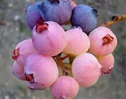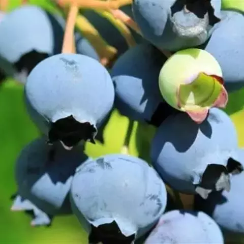 蓝莓是杜鹃花科、越橘属的落叶灌木,小枝绿色,具棱或圆柱形,通常具成行的柔毛;叶片近革质,卵形至椭圆形,…