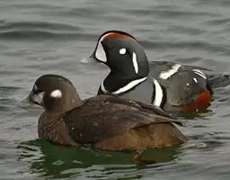 斑头雁两性相似,但雌鸟略小。成鸟头顶污白色,具棕黄色羽缘,尤其在眼先、额和颊部较深。头顶后部有二道黑色横斑,前一道在头顶稍后,较长,延伸至两眼,呈马蹄铁形状;后一道位于枕部,较短。头部白色向下延伸,在颈的两侧各形成一道白色纵纹;后颈暗褐色。背部淡灰褐色,羽端缀有棕色,形成鳞状斑;翅覆羽灰色,外侧初级飞羽灰色,先端黑色,内侧初级飞羽和次级飞羽黑色,腰及尾上覆羽白色,尾灰褐色,具白色端斑。颏、喉污白色,缀有棕黄色,前颈暗褐色,胸和上腹灰色,下腹及尾下覆羽污白色,两胁暗灰色,具暗栗色宽端斑。虹膜暗棕色,嘴橙黄色,嘴甲黑色,脚和趾橙黄色。幼鸟头顶污黑色,不具横斑;颈灰褐色,两侧无白色纵纹;胸、腹灰白色,两胁淡灰色,无暗栗色端斑。