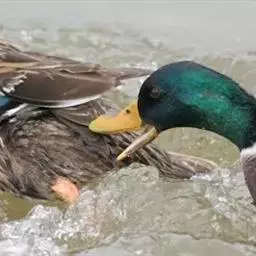 绿头鸭属游禽,大型鸭类。体长47-62厘米,体重大约1千克,外形大小和家鸭相似。雄鸟嘴黄绿色,脚橙…