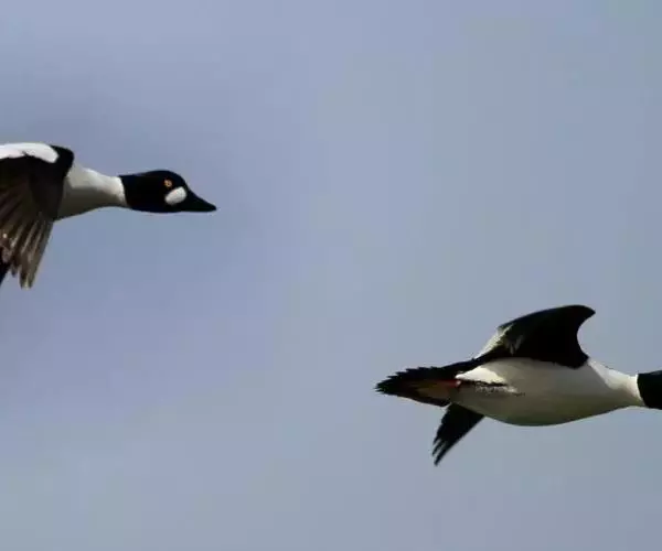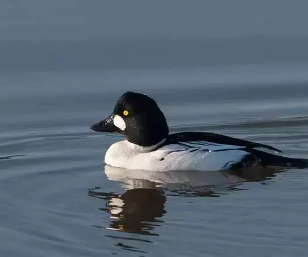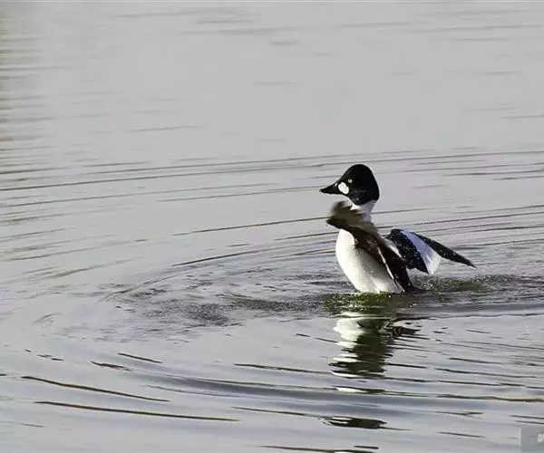 鹊鸭(学名:Bucephala clangula)中型鸭类,体长32-69厘米,体重0.5-1千克。嘴短粗,颈亦短,尾较尖。雄鸭头黑色,两颊近嘴基处有大型白色圆斑。上体黑色,颈、胸、腹、两胁和体侧白色。嘴黑色,眼金黄色,脚橙黄色。飞行时头和上体黑色,下体白色,翅上有大型白斑,特征极明显,容易识别。雌鸟略小,嘴黑色,先端橙色,头和颈褐色,眼淡黄色,颈基有白色颈环;上体淡黑褐色,上胸、两胁灰色;其余下体白色。主要栖息于平原森林地带中的溪流、水塘和水渠中,尤喜湖泊与流速缓慢的江河附近的林中溪流与水塘。泳时尾翘起。白天活动成群游泳在水流缓慢的江河与沿海海面,边游边不断潜水觅食。善潜水,一次能在水下潜泳30秒左右。食物主要为昆虫及其幼虫、蠕虫、甲壳类,软体动物、小鱼、蛙以及蝌蚪等。分布于北美北部、西伯利亚、欧洲中部和北部、亚洲等地。