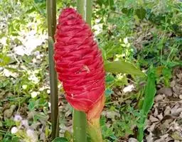 密苞山姜是姜科,山姜属多年生草本植物,株高可达1.5米。叶片椭圆状披针形,顶端渐尖,并具细尾尖,基…