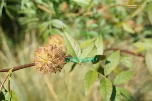 总状花序腋生,花密集成球状;总花梗短于叶,密生短柔毛及黄色鳞片状腺点;苞片卵状披针形,长6-8毫米,膜质,具腺点;花萼钟状,长4-5毫米,密被腺点,基部常疏被短柔毛;萼齿5,披针形,与萼筒近等长;花冠淡紫色、紫色或淡紫红色,旗瓣卵圆形,长6-8毫米,顶端圆,基部具短瓣柄,翼瓣长5-6毫米,龙骨瓣稍短于翼瓣。果序呈椭圆状,荚果卵圆形,长10-17毫米,宽6-8毫米,顶端具突尖,外面被长约5毫米刚硬的刺。种子2枚,黑色,圆肾形,长约2毫米。花期6-7月,果期7-9月。