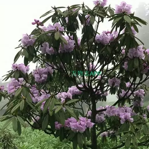 腺果杜鹃(学名:Rhododendron davidii Franch.):常绿灌木或小乔木,高1.5-5米,稀达8米;树皮黄褐色;幼枝绿色,无毛,老枝灰色,顶生冬芽卵形,无毛,叶厚革质,常集生枝顶,长圆状倒披针形或倒披针形,上面深绿色,下面苍白色。顶生伸长的总状花序,有花6-12朵;花冠阔钟形,长3.5-4.5厘米,玫瑰红色或紫红色,有时外面略具腺体,裂片7-8,卵形至圆形。蒴果短圆柱形,褐色。花期4-5月,果期7-8月。