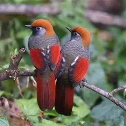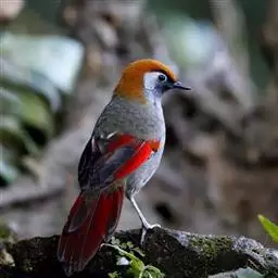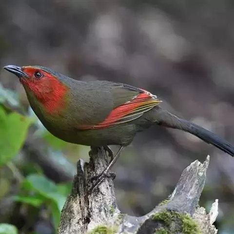 赤尾噪鹛中型鸟类,体长24~28厘米。头顶至后颈红棕色,两翅和尾鲜红色,眼先、眉纹、颊、颏和喉黑色,…