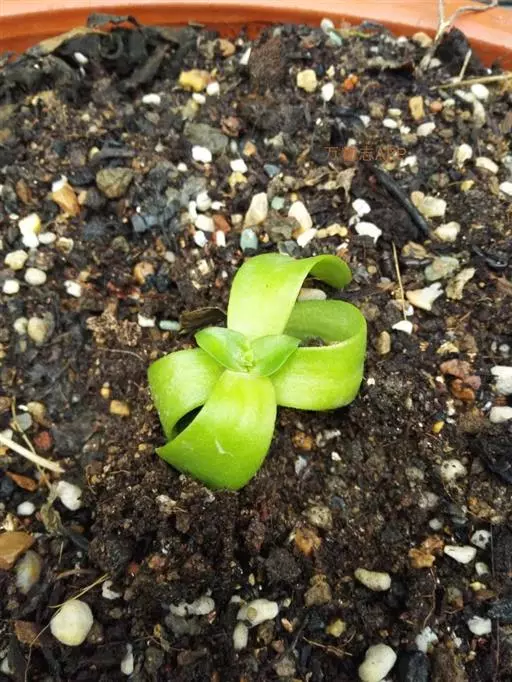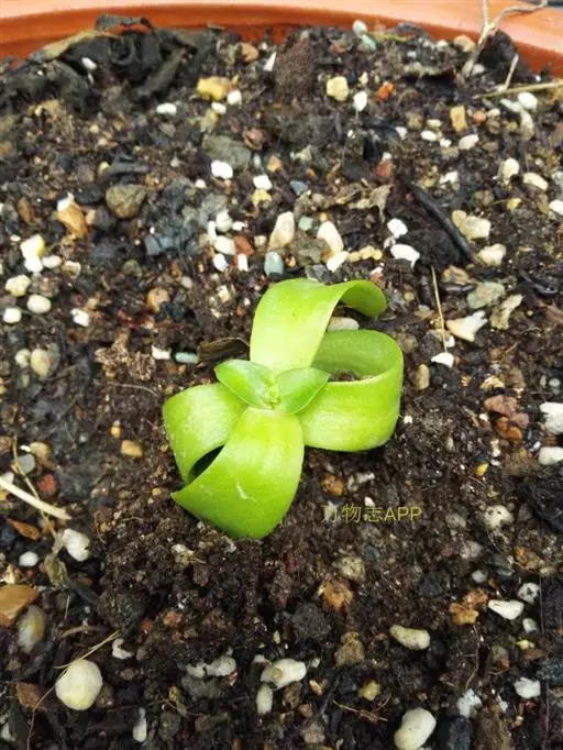 叶3-13,基生呈莲座状,脆嫩多汁,干时膜质;叶片长椭圆形,长1-4.5厘米,宽0.5-1.7厘米,边缘全缘并内卷,顶端钝形或圆形,基部宽楔形,下延成短柄,上面密生多数分泌粘液的腺毛,背面无毛,两面淡绿色,侧脉每边5-7条。