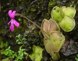 高山捕虫堇(学名:Pinguicula alpina L.)是狸藻科捕虫堇属的一种多年生草本植物,花期5-7月,果期7-9月。这种植物常在中高海拔的阴湿岩壁间或高山杜鹃灌丛下生长。在亚洲、欧洲都有分布,中国在山西、四川、贵州、陕西等省有分布。这种植物能分泌粘液并散发气味诱惑猎物,粘住昆虫后还能分泌消化酶将猎物溶化“吃”掉,因其花朵像一朵朵小莲花,又被称为“美丽杀手”。