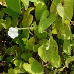 多年生草本,茎略呈蔓性。叶呈心形或不规则卵形,偶有缺裂,叶色为黄绿色,花喇叭形。
