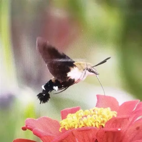 蜂鸟鹰蛾,是鳞翅目天蛾科的昆虫,别称蜂鸟天蛾。其颊突大,…