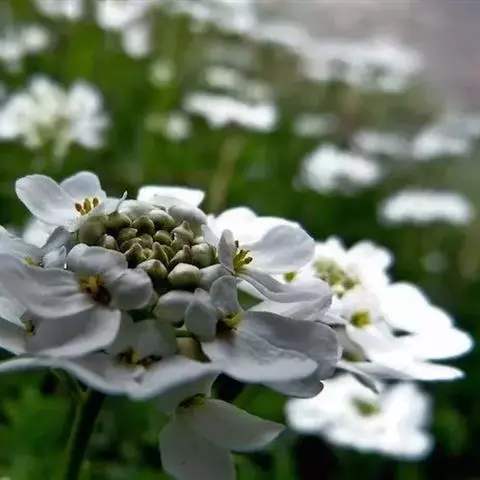 屈曲花(学名:Iberis amara L.)是十字花科,屈曲花属一年生草木植物,高可达40厘米;茎直立,稍分枝,茎下部叶匙形,上部叶片披针形或长圆状楔形,顶端圆钝,基部渐狭,总状花序顶生;花梗丝状,伸展或上升,萼片倒卵形,花瓣白色或浅紫色,倒卵形,短角果圆形,裂瓣具横纹;花柱和顶端凹缺等长或稍超出。种子宽卵形,红棕色,下部有翅。5月开花,6月结果。