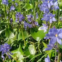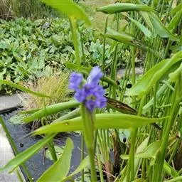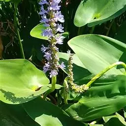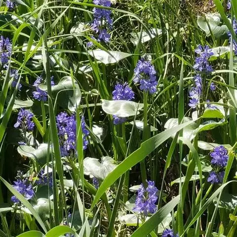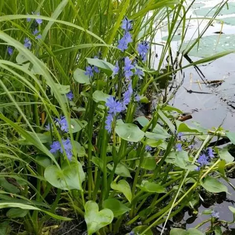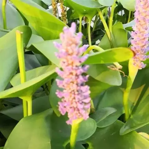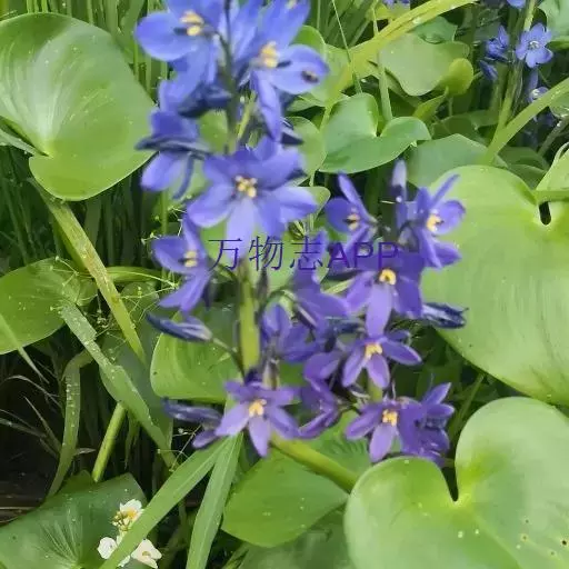 雨久花花大而美丽,淡蓝色,像只飞舞的蓝鸟,叶色翠绿、光亮、素 雅,在园林水景布置中常与其他水生观赏植物搭配使用,单独成片种植效果也好,沿着池边、水体的边缘按照园林水景的要求可作带形或方形栽种。