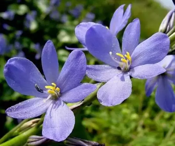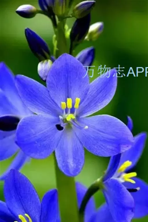 总状花序顶生,有时再聚成圆锥花序;花10余朵,具5-10毫米长的花梗;花被片椭圆形,长10-14毫米,顶端圆钝,蓝色;雄蕊6枚,其中1枚较大,花瓣长圆形,浅蓝色,其余各枚较小,花药黄色,花丝丝状。