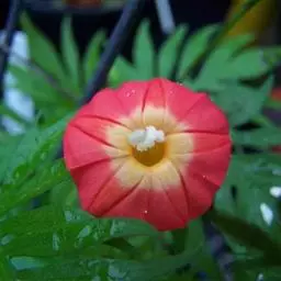 王妃藤,Ipomoea horsfalliae ,旋花科番薯属植物。常绿蔓性藤本,茎深褐色,叶互生,掌状深裂,小叶3~5枚,其中下叶片最大,长李椭圆形到披针形,革质。花腋生,花冠喇叭状,先端5裂,鲜红色。春至秋季开花。