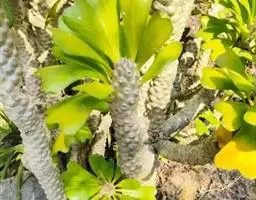 虎刺梅:别称铁海棠,是蔓生灌木植物。茎多分枝,长60-100厘米,直径5-10毫米,具纵棱,密生硬…