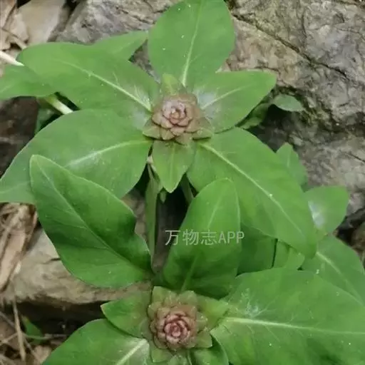 植株较矮小,高6-12厘米。茎基部倾卧,节上生根,自基部分枝。叶卵圆形,有时近圆形,长2-5厘米,宽1.3-3.5厘米,幼时带红色。花期5月。