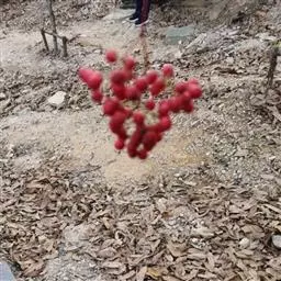 果实椭圆形或卵形,直径7-10毫米,长10-13毫米,红色或黄色,不具斑点或具极少数细小斑点,2室,萼片脱落后果实先端残留圆斑。花期5月,果期8-9月。