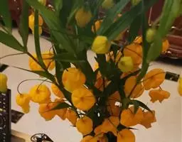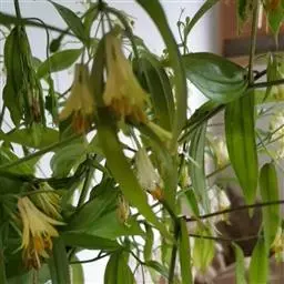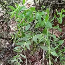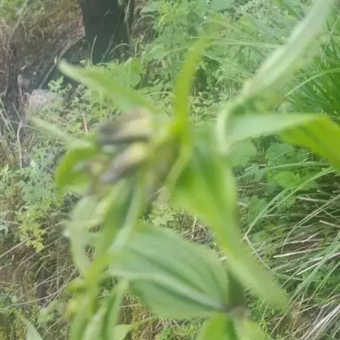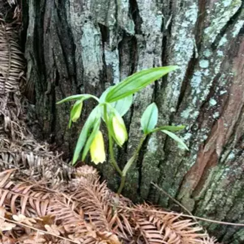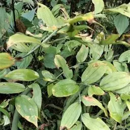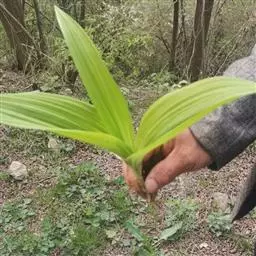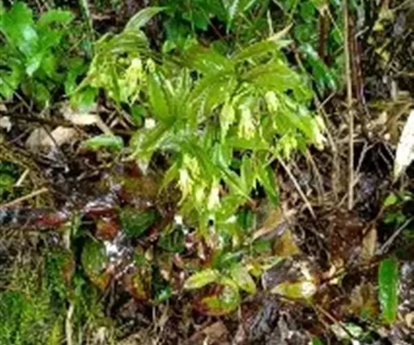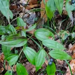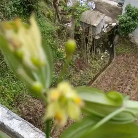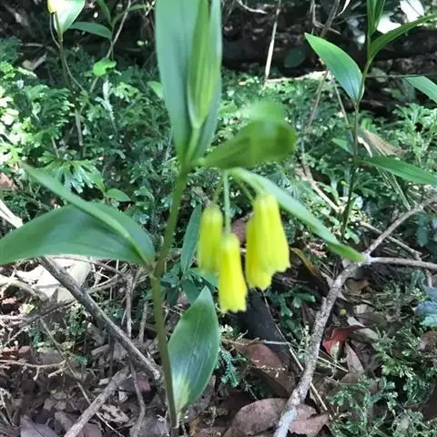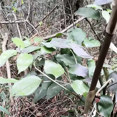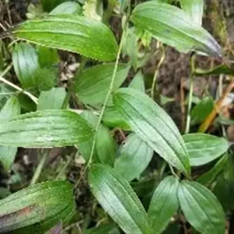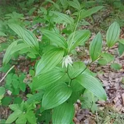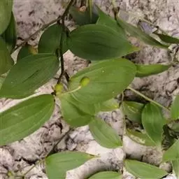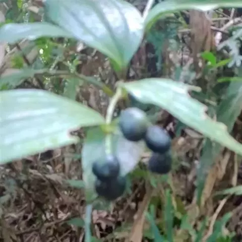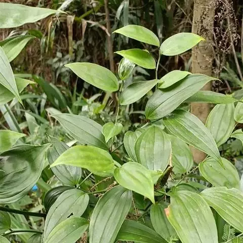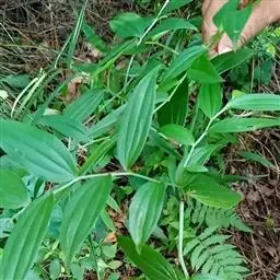 根状茎横出,呈结节状,有残留的茎基和圆盘状疤痕;根肉质,长可达30厘米,粗 1-4毫米,有纵皱纹或细毛,灰黄色。茎高30-70(100)厘米,上部有分枝。叶厚纸质,椭圆形、卵形至卵状披针形,长5-15厘米,宽2-6厘米,先端渐尖至尾状渐尖,下面脉上和边缘稍粗糙,基部近圆形;叶柄长0.5-1厘米。伞形花序有花2-6朵,生于茎和分枝顶端;花梗长1.5-2.5厘米,有乳头状突起;花被片白色或黄绿色,倒卵状披针形,长10-19毫米,先端尖,基部有长1(-2)毫米的短距;花丝等长或稍长于花被片,花药长3毫米,露出于花被外;花柱连同3裂柱头4-5倍长于子房,明显高出花药之上。浆果直径5-10毫米,有3-6颗种子。种子珠形或三角状卵形,直径 3-4毫米,棕色,有细皱纹。花期3-5月,果期6-11月。 [1-2]