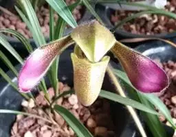 飘带兜兰 Stein)是兰科兜兰属的附生植物,叶基生,叶片宽带形,厚革质,无毛;花葶近直立,绿色,…