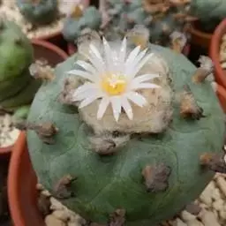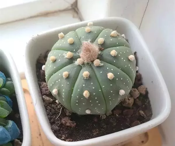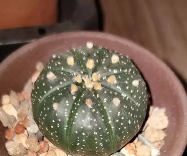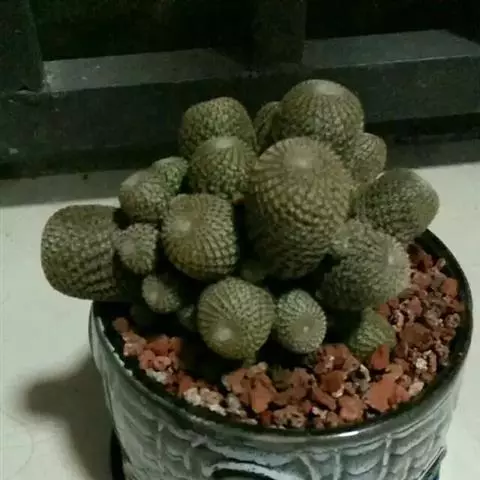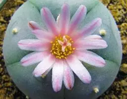 多年生仙人掌类植物。半球状,生长慢。高8~10cm,冠径10cm。茎无刺,约具8条低棱,棱上具小而成簇状的小窠。花亮黄色,径达6cm,夏季开放。