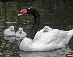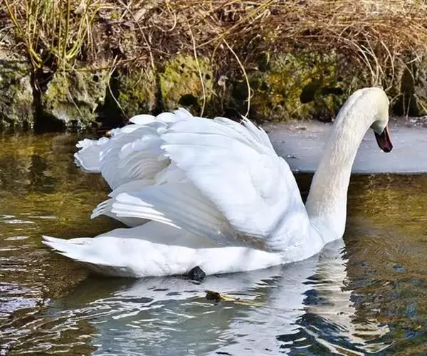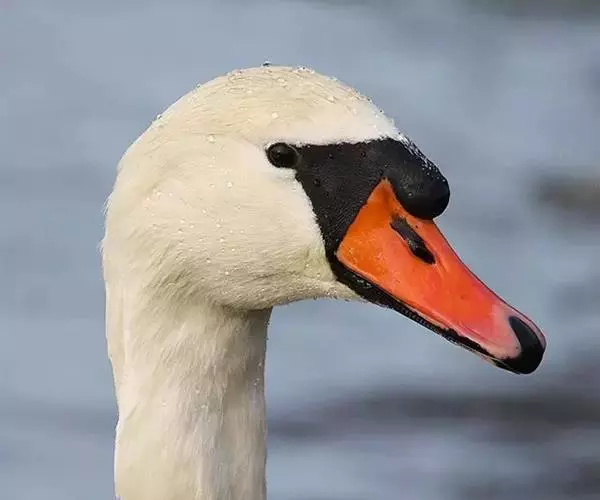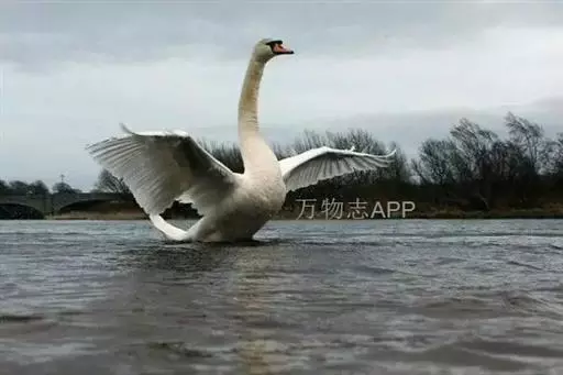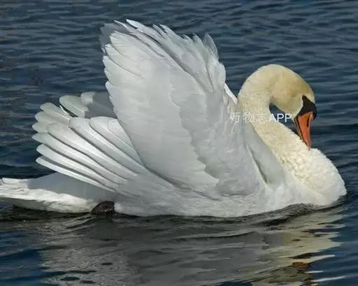 疣鼻天鹅(学名:Cygnus olor):是一种大型的游禽,体长1.2-1.5米,体重6750-10千克。脖颈细长,前额有一块瘤疣的突起,因此得名。全身羽毛洁白。在水中游泳时,颈部弯曲而略似 "S"形。嘴基有明显的球块,且在雄性较大,雌性不很发达。眼深棕色 嘴橙黄色,基部和球块黑色 脚趾和蹼灰黑色。栖息于湖泊、江河或沼泽地带。在地上行走拙笨,但极善游泳。飞行时也将头部伸直,但很少发出叫声,故又得名 “无声天鹅”。