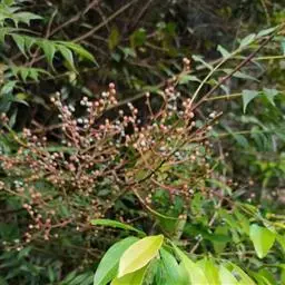 核果倒卵状球形,略压扁,径约5毫米,成熟时紫红色,干后具纵向细条纹,先端细尖。