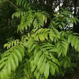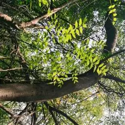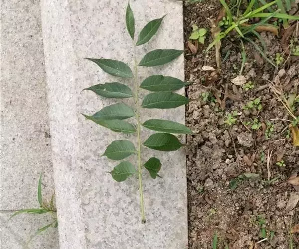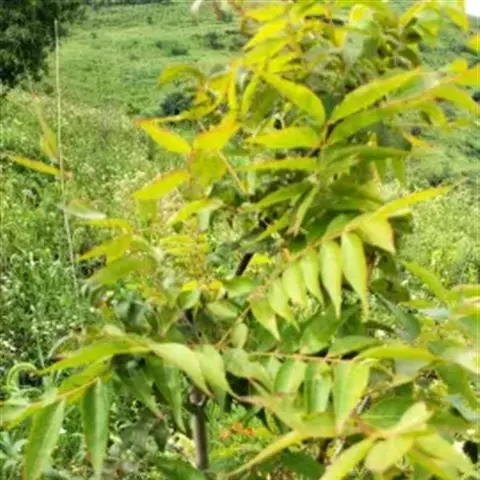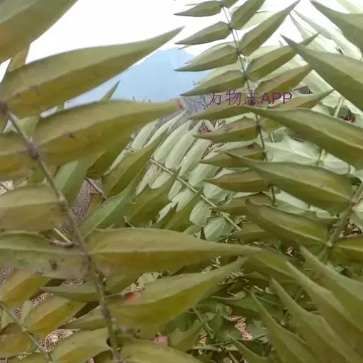 落叶乔木,高达25~30米;树干扭曲。树皮暗褐色,呈鳞片状剥落,幼枝灰棕色,具细小皮孔,疏被微柔毛或 近无毛。奇数羽状复叶互生,有小叶5-6对,叶轴具条纹,被微柔毛,叶柄上面平,被微柔毛;小叶对生或近对生,纸质,披针形或卵状披针形或线状披针形,长5-10厘米,宽1.5-2.5厘米,先端渐尖或长渐尖,基部偏斜,全缘,两面沿中脉和侧脉被卷曲微柔毛或近无毛,侧脉和细脉两面突起;小叶柄长1-2毫米。