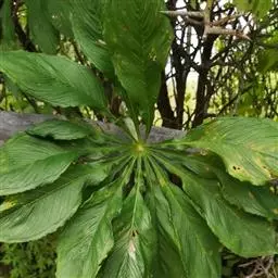 灰枯病。发病初期,感病叶片上产生褪绿斑点,扩展后形成不规则形大病斑,病斑薄纸状,中央浅黄色至深灰色,边缘褐色。发病后期,病斑上产生小黑点,为病原菌的分生孢子器。防治方法:发病初期可用75%百菌清800倍液喷洒,每周1次,连续3-4次,效果显著。