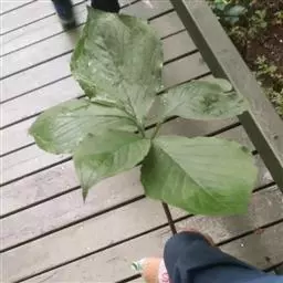 彩叶万年青(学名:Dieffenbachia sequina (L.) Schott)是天南星科、花叶万年青属较矮小亚灌木。茎粗壮,上升,上部直立。叶柄具鞘,绿色,具白色条状斑纹;叶片长圆形至卵状长圆形,中肋宽厚,侧脉表面下凹,花序柄短。佛焰苞骤尖,绿色或白绿色。肉穗花序短于佛焰苞,雄花序几紧接,柱头近圆锥形,浆果橙黄绿色。