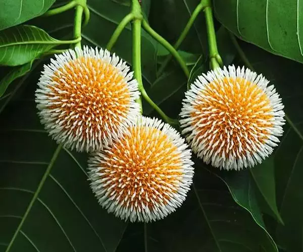 团花为热带常绿或半落叶乔木。在广西西南部有自然地布。生长迅速,十年前后可成材。在1972年第七届世界林业会议上,被称为“奇迹树”。树高达30多米,胸径可达丑米以上,主干通直。木材为散孔材,容重0.499克/立方厘米,纤维长1712微米,纤维素达到50.4%,适合作火柴杆、牙签和浆粕原料。木材耐腐性能较差,且易受虫蛀,但经水浸处理后,可作一般家具和板材。