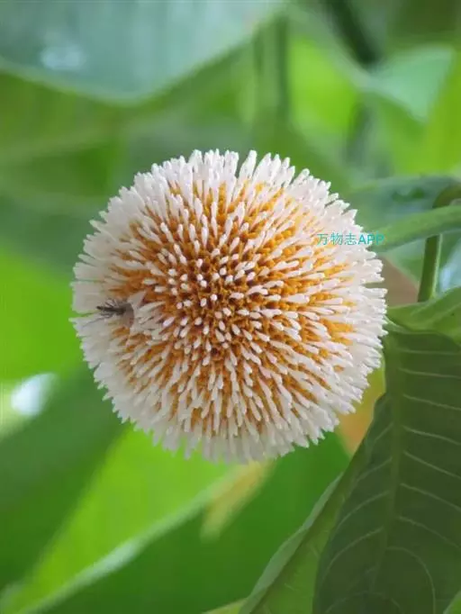团花(学名:Neolamarckia cadamba (Roxb.) Bosser)是茜草科团花属植物,落叶大乔木,高达30米;树干通直,基部略有板状根;树皮薄,灰褐色,老时有裂隙且粗糙。叶对生,薄革质,椭圆形或长圆状椭圆形,长15-25厘米,宽7-12厘米;叶柄长2-3厘米,粗壮。头状花序单个顶生,不计花冠直径4-5厘米,花序梗粗壮,长2-4厘米。果序直径3-4厘米,成熟时黄绿色;种子近三棱形,无翅。花、果期6-11月。