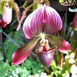 紫纹兜兰 Stein)是兰科兜兰属的地生或半附生植物。叶基生,叶片狭椭圆形或长圆状椭圆形,…