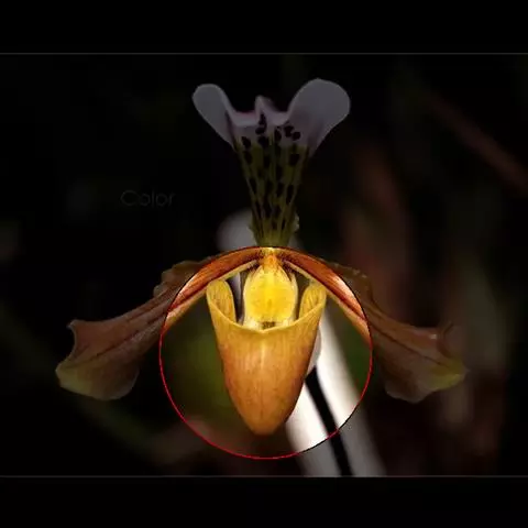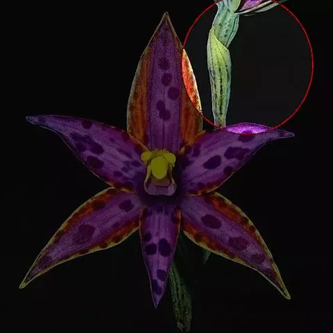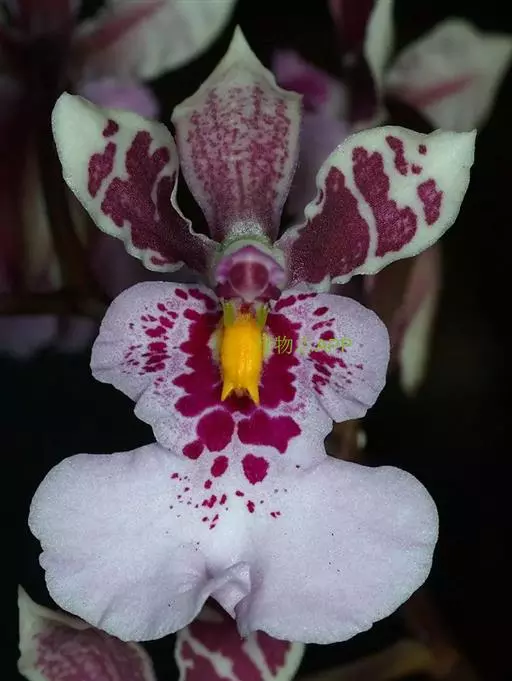 萼片绿色,棕色和紫色,背面龙骨状突起有紫色斑点。唇有绿色斑点。