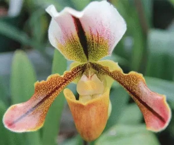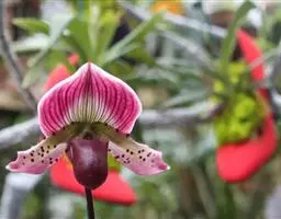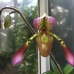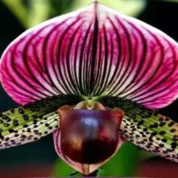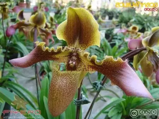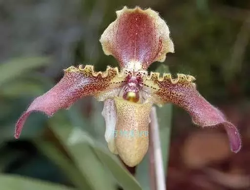 兜兰花比较雅致,色彩比较庄重,色及带有不规则斑点或条纹。花瓣较厚,花朵开放期比较长。属观赏类花草。