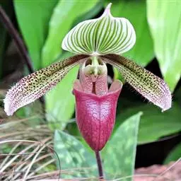 麻栗坡兜兰兰科,兜兰属地生或半附生植物。叶基生;数枚至多枚,叶片带形、革质。花葶从叶丛中长出,…