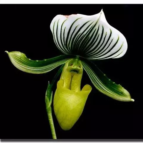 萼片绿色和白色,背面龙骨状突起绿色,唇绿色。