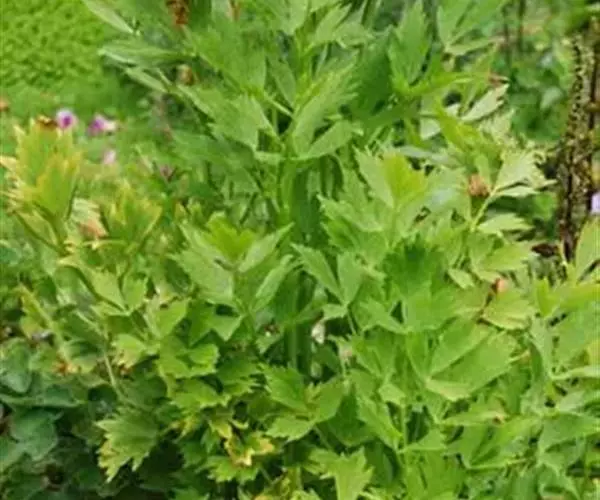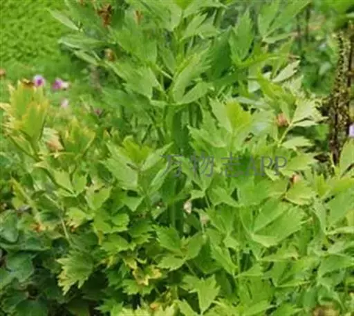 欧当归(学名:Levisticum officinale Koch.)是伞形科 、欧当归属多年生草本植物,全株有香气,高可达2.5米。根茎肥大,径有多数支根,顶部有多数叶鞘残基。茎直立,光滑无毛,基生叶和茎下部叶二至三回羽状分裂,有长柄,叶柄带紫红色的叶鞘;叶片轮廓为宽倒卵形至宽三角形,茎生叶叶柄较短,复伞形花序,总苞片,小总苞片均为宽披针形至线状披针形,边缘白色,膜质,小伞形花序近圆球形,花黄绿色,萼齿不明显,花瓣椭圆形,花柱基短圆锥状。分生果椭圆形,黄褐色,背部稍扁压,6-8月开花,8-9月结果。