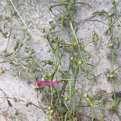为带根的干燥全草,扭缠成团状,表面灰绿色至灰棕色,有主根一条,粗约2~4毫米,须根纤细,淡灰棕色;茎细高卷曲,质脆易折断,中央有白色髓部;叶子对生,具短柄或无柄,为狭长线形,革质,多破碎,极皱缩,易脱落;有托叶,长1~2毫米;花为叶腋单生,无柄或近于无柄,花萼筒状,4裂,裂片边缘具短刺毛,花冠呈漏斗形;蒴果呈扁球形,室背开裂,花萼宿存,种子棕黄色,极细小;闻之气微,口尝味淡。