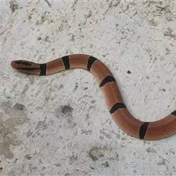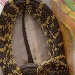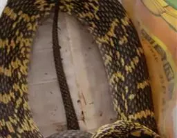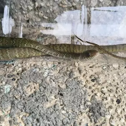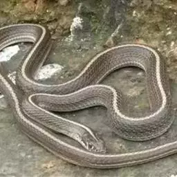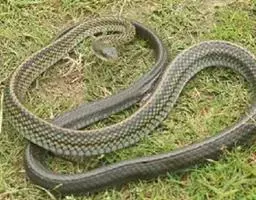 滑鼠蛇 滑鼠蛇 是中国所产无毒蛇中的较大者,成蛇体长而粗大,一般在1500mm以上,有的可达2000mm左右。蛇身背面黄褐色,体后部有不规则的黑色横纹,横斑至尾部形成网纹;腹面前段红棕色,后部淡黄色。头部黑褐色,唇鳞淡灰色,腹面黄白色,腹鳞后缘色黑,身体前段、后段及尾部的腹鳞黑色,后缘更为明显。颊鳞一般3片,背鳞一般19一17一14行,腹鳞185以上。头较长,眼大而圆,瞳孔圆形;狭部略内凹;狭鳞一般3枚;半阴茎不分叉,圆柱形。颊鳞3或4、眼少2或5,与其他蛇易于区别。背鳞颈部19行,体中部17行,肛前14行;腹鳞189~193行,尾下鳞100~118对。背面黄褐色,在体后有黑色网纹或横条纹;腹面黄白色,腹鳞及尾下鳞的后缘为黑色,有时呈黄白色。