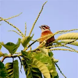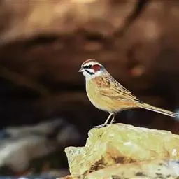 栗斑腹鹀:属小型鸣禽。体重19-25克,体长145-167毫米。头顶至背栗红色,眼先和颧纹黑褐色,…