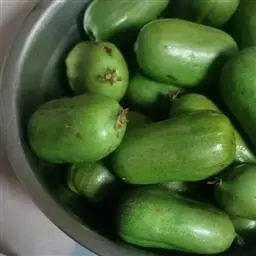 果暗绿色,圆柱形或卵状圆柱形,长3-3.5厘米,直径2-2.5厘米,具斑点,无毛或仅在两端有少量残存茸毛;种子纵径2-2.5毫米。