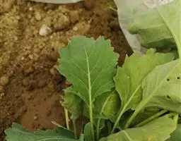 c、用竹签小心挖出白菜苗,栽植时将根系垂直,舒展栽在穴内,将植株扶正,埋好即可。