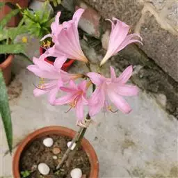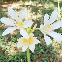 稻草石蒜草本,地生。鳞茎近球形;叶带状;伞形花序,有花5-7朵,花稻草色;花被裂片腹面散生少数粉红…