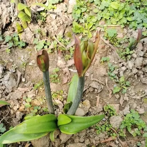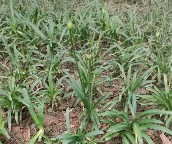 若行露地栽培,于4月将鳞茎放于温室光照充足的温暖处,促使根部活动。栽植场所应选光照充足、富含腐殖质的沙质或粘质壤土处。于前1年秋天深耕,施入基肥;次年春天再翻耕1次,再施入基肥,整地做畦。5月下旬栽植,覆土深度3-5厘米,鳞茎间距15-20厘米。秋末着霜,叶片变黄,要及时采收鳞茎,晾干后放8℃左右处贮藏。以备明年栽植。
