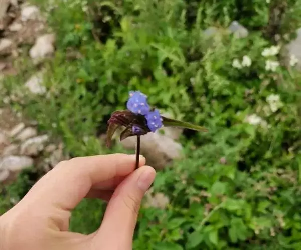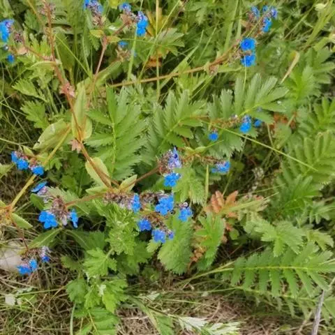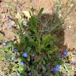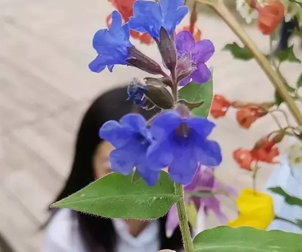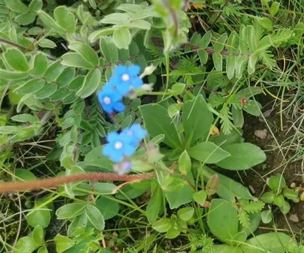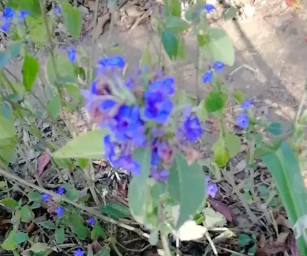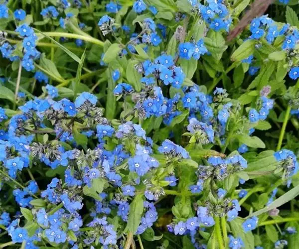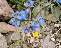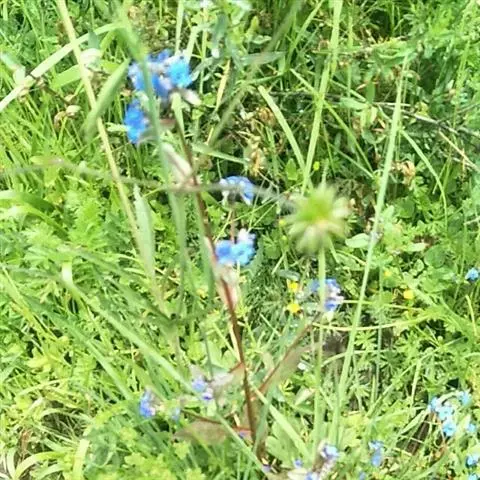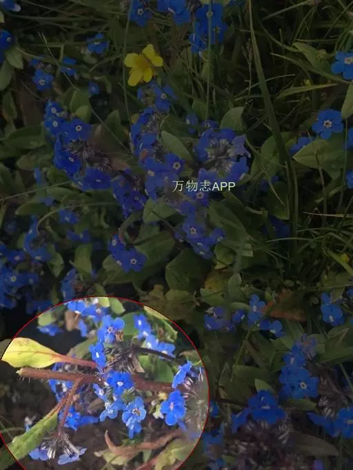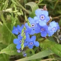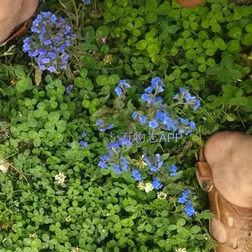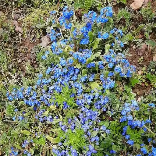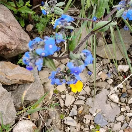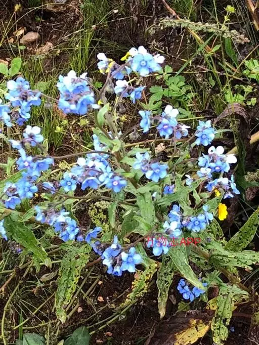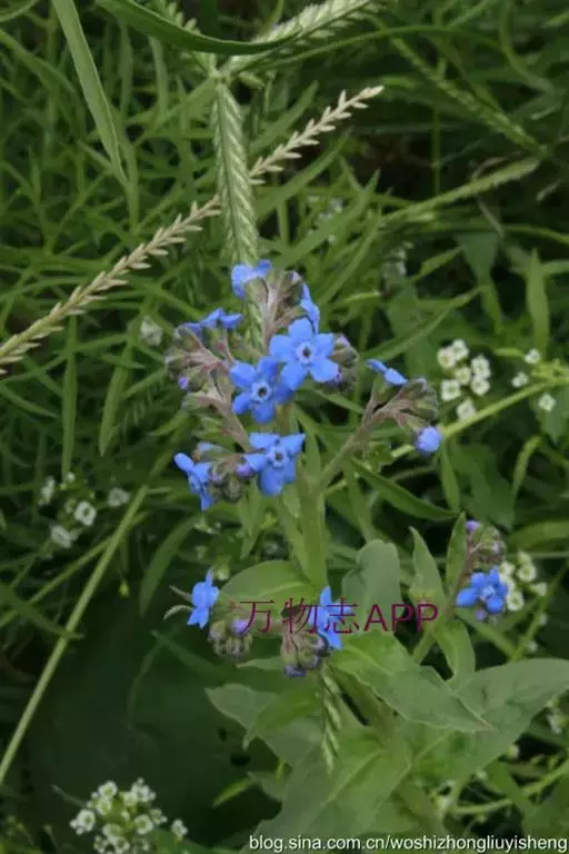 花序密集,直径0.5-1.5厘米,有时稍伸长,长约达2厘米,生茎顶端及无叶的分枝顶端,基部苞片叶状,其他苞片小,长0.5-2毫米;花梗短,密被短糙伏毛;花萼长约2毫米,果期长达3.5毫米,5裂近基部,裂片线形或狭三角形,外面疏被短柔毛和长糙毛,边缘密被短柔毛,内面有短伏毛;花冠蓝色或蓝紫色,檐部直径5-9(-11)毫米,无毛,裂片近圆形,筒部长2.5-3.8(-4)毫米,无毛,附属物低梯形或半月形,长约0.3毫米,无毛或有短毛。