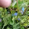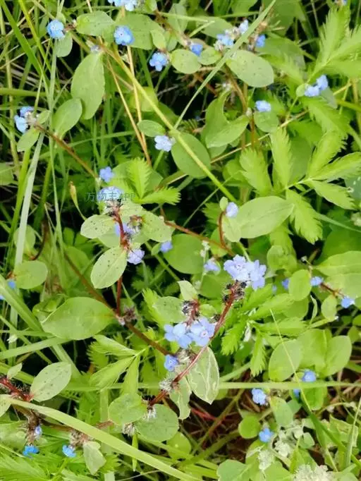 基生叶和茎下部叶具长柄,卵形、狭卵形至宽披针形,长4-12厘米,宽0.7-4.4厘米,顶端急尖、渐尖,稀钝,基部圆形或宽楔形,中部以上叶渐变小,具短柄至无柄,狭卵形或宽披针形,基部渐狭,边缘 微孔草 全缘,两面有短伏毛,下面沿中脉有刚毛,上面还散生带基盘的刚毛。